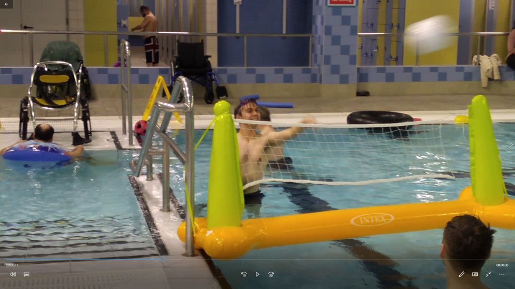 Pumpkin having a splashing time in the multiuse pool